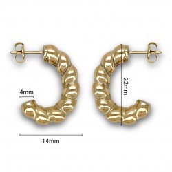 Diese eleganten Creolen aus Gold zeichnen sich durch ein einzigartiges strukturiertes, bauchiges Design mit einer Höhe von 22 mm aus und verleihen jedem Outfit einen Hauch von Raffinesse.