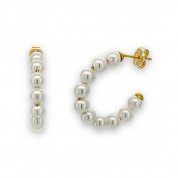 Diese luxuriösen goldenen Perlencreolen sind auf Eleganz ausgelegt. Sie wurden für formelle Anlässe wie Hochzeiten gefertigt und bestehen aus wunderschön gefassten Perlen auf einem stabilen goldenen Ring. Die Kombination aus hochwertigem Gold und strahlenden Perlen ergibt ein anspruchsvolles Accessoire für Frauen, die edlen Schmuck zu schätzen wissen. Diese Ohrringe sind auch ein Statement, wenn sie mit formellen Outfits oder Abendgarderobe kombiniert werden.