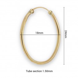 Diese ovalen Creolen messen 18mm x 24mm mit einer Rohrsektion von 1,50mm und bieten ein elegantes und vielseitiges Design, das sowohl für Freizeit- als auch für besondere Anlässe geeignet ist.