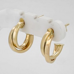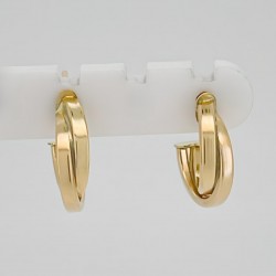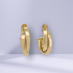 Minimalistische geflochtene Creolen aus Gelbgold. Ein vielseitiges Accessoire für alltägliche und formelle Anlässe.