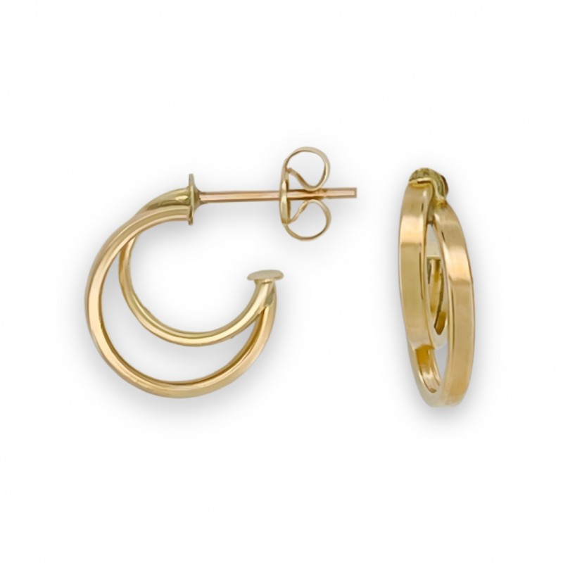 Moderne geometrische Creolen aus Gelbgold, entworfen für Frauen, die Wert auf Stil und Vielseitigkeit legen. Perfekt für alle Gelegenheiten.