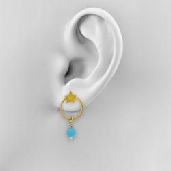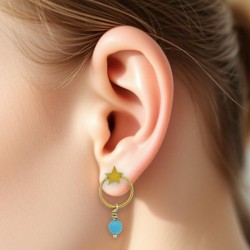 Diese goldenen Creolen bestechen durch einen stilvollen Sternanhänger mit einer zarten blauen Perle. Perfekt für Frauen und Kinder, die einzigartige und elegante Designs lieben.