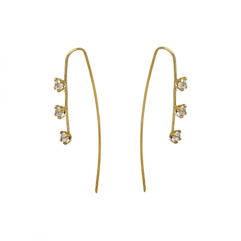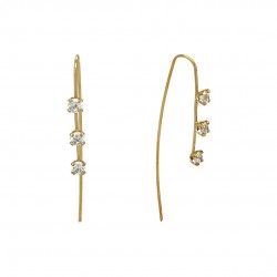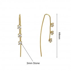 Diese stilvollen langen Threader-Ohrringe zeichnen sich durch ein elegantes Design mit einem 44-mm-Draht aus, der mit drei 3-mm-Steinen verziert ist. Diese Ohrringe sind ideal für den Abend und besondere Anlässe und bieten einen Hauch von Eleganz und Raffinesse.