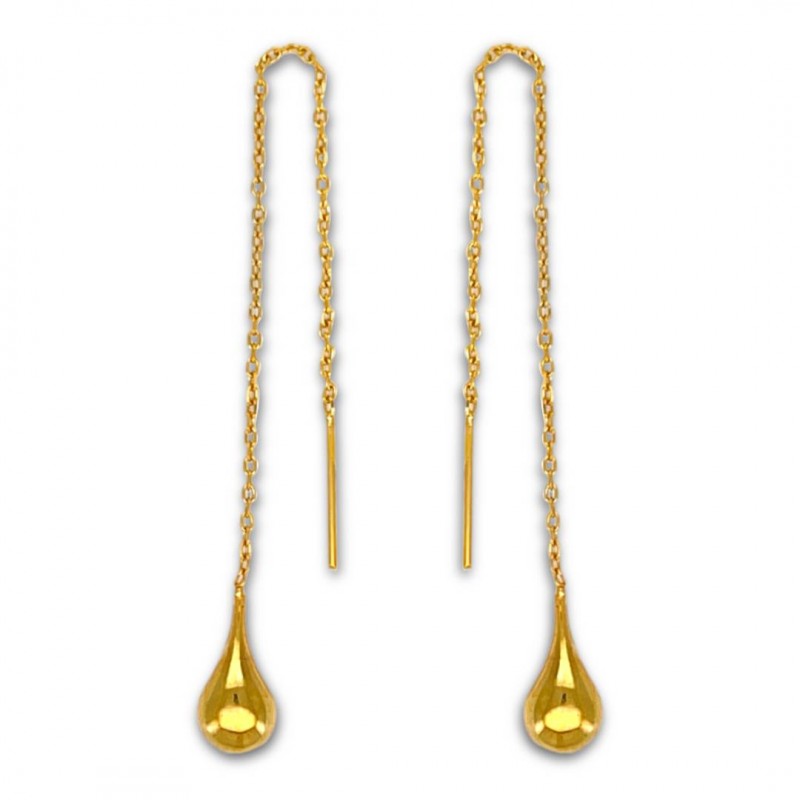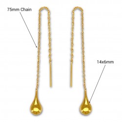 Elegante Threader-Ohrringe aus Gelbgold mit einem 14 x 6 mm großen Tropfendesign und einer 75 mm langen Kette, die jedem anspruchsvollen Outfit eine luxuriöse Note verleihen.