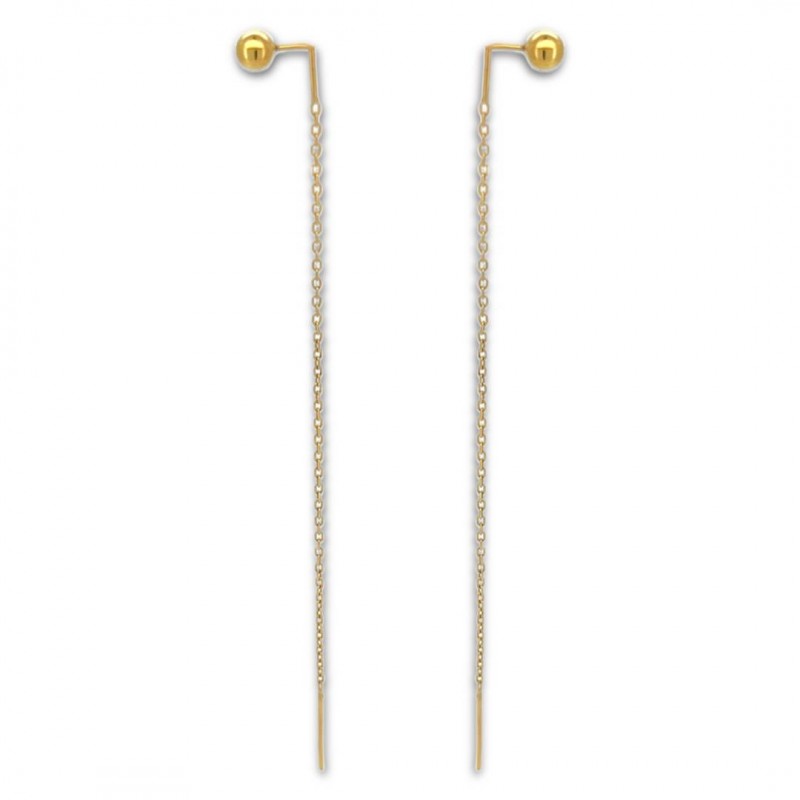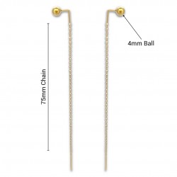 Damen-Ohrringe aus Gelbgold mit 75-mm-Kette und 4mm-Kugelakzent, ideal für den täglichen Gebrauch und minimalistische Stile. Gefertigt für einen Hauch von Eleganz.