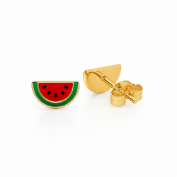 Diese Wassermelonen-Emaille-Ohrringe verleihen jedem Look einen frischen Farbtupfer. Sie sind aus echtem Gelbgold mit roter und grüner Emaille gefertigt, verspielt, hypoallergen und perfekt für den Sommer.