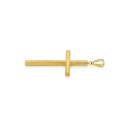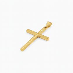 Dieser handgefertigte Kreuzanhänger mit satinierter Oberfläche besticht durch sein kunstvoll geschnitztes Rohrdesign, das ihm Tiefe und Charakter verleiht. Er ist unisex. Die satinierte Oberfläche unterstreicht die Einzigartigkeit des Schmuckstücks und macht es besonders attraktiv für Großhändler, die nach exklusiven und minimalistischen Golddesigns suchen.