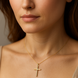 Dieser große, handgefertigte Kreuzanhänger besticht durch seine klare Geometrie und seine starke Ausstrahlung. Er ist ideal für alle, die ausdrucksstarken religiösen Schmuck suchen. Mit 33 × 20 mm und einer Stärke von 2,6 mm bietet er ein hochwertiges und solides Tragegefühl und eignet sich sowohl für Erwachsene als auch als Geschenk zu feierlichen Anlässen.