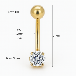 Der vierzackige, runde Zirkonia (6 mm) bietet klassischen Glanz in echtem Gold. Der gebogene Stab (1,20 mm) mit polierter Kugel sorgt für langlebigen Tragekomfort im Alltag.Produkteigenschaften
