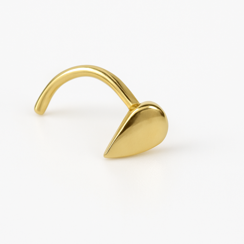 Dieser elegante Nasenstecker aus echtem Gelbgold ist eine luxuriöse und langlebige Wahl für alle Liebhaber von Körperschmuck. Sein flaches Tropfendesign verbindet modernen Stil mit zeitloser Eleganz. Der gebogene Stift sorgt für sicheren und bequemen Sitz – perfekt für den Alltag.Hauptmerkmale: