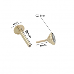 Erweitern Sie Ihre Sammlung mit diesem goldenen Labret-Stecker mit 4 mm großem, brillantem Zirkonia. Er ist für Frauen, Mädchen und Unisex-Trägerinnen konzipiert. Er eignet sich perfekt für Lippen-, Ohr- oder Gesichtspiercings. Die flache Rückseite und die hypoallergenen Eigenschaften sorgen für Komfort und Sicherheit, während die hochglanzpolierte Oberfläche den Glanz verstärkt. Eine edle und moderne Wahl für Schmuckgroßhändler.