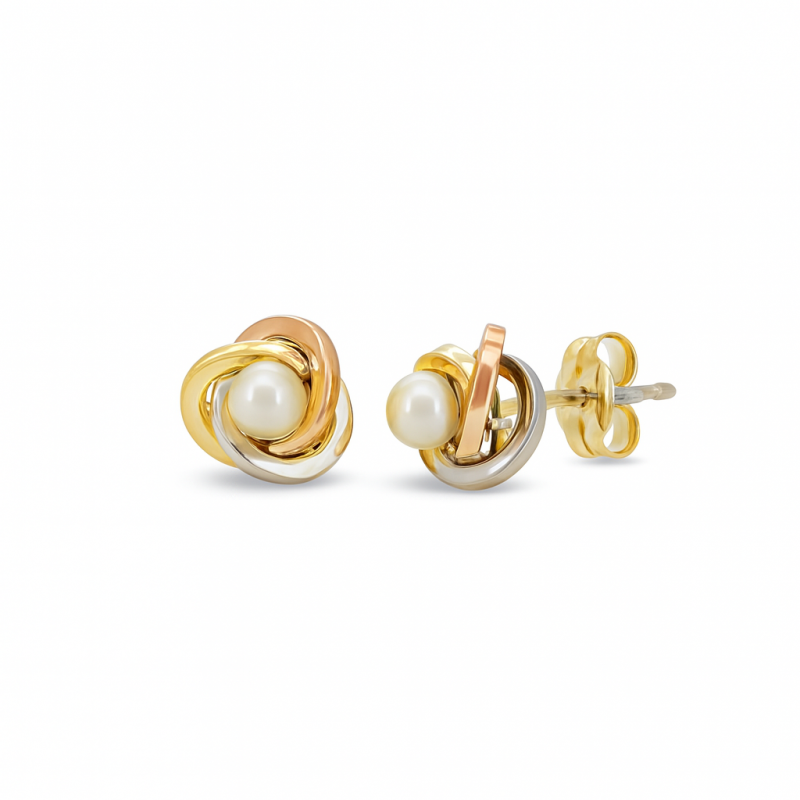 Diese Knotenohrringe sind exquisit in dreifarbigem Gold gefertigt und mit leuchtenden Süßwasserperlen verziert, die Einheit und zeitlose Eleganz symbolisieren. Die Kombination aus Gelb-, Weiß- und Roségold unterstreicht ihre Raffinesse und macht sie zur perfekten Wahl für Frauen, die Luxus und Vielseitigkeit suchen. Diese hypoallergenen Ohrringe eignen sich ideal für besondere Anlässe oder den Alltag und zeugen von feiner Handwerkskunst und zeitloser Schönheit.
