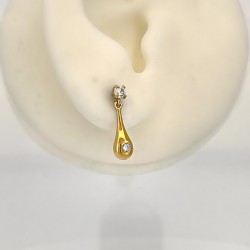 Elegante goldene Tropfenohrringe mit zwei Zirkonen (3 mm und 2 mm), perfekt für Abendgarderobe und formelle Anlässe. Luxuriös gefertigt, um jedes Outfit aufzuwerten.