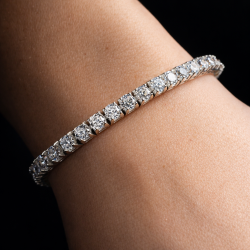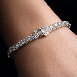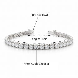 Dieses Weißgold-Tennisarmband besticht durch funkelnde, 4 mm große, runde Zirkonia-Steine in klassischer Tennisfassung. Mit einer Länge von 18 cm bietet es optimalen Tragekomfort und maximale Brillanz zu einem attraktiven Großhandelspreis. Ideal für Brautkollektionen, Modehändler und festliche Anlässe. Gefertigt aus massivem Weißgold mit Rhodium-Finish für langanhaltenden Glanz und hohe Strapazierfähigkeit.