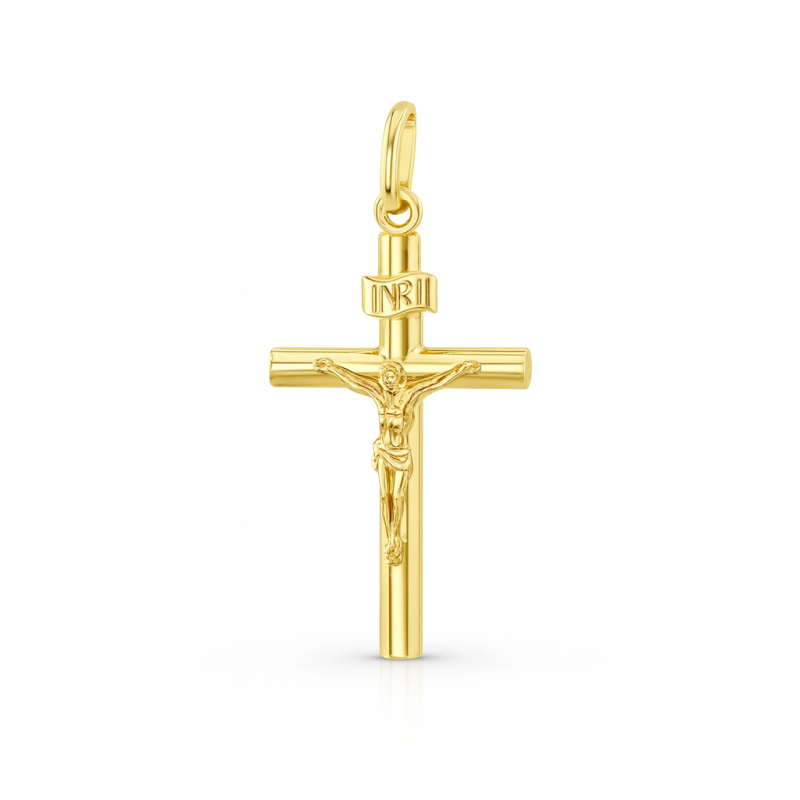 Dieser elegante Kruzifixanhänger aus echtem Gelbgold besticht durch ein poliertes Röhrenkreuz, eine detailreiche Jesusfigur und die INRI-Inschrift. Seine Größe ist ideal für den Alltag und symbolisiert den Glauben. Perfekt zu Goldketten – ein bedeutungsvolles Geschenk für religiöse Anlässe und Schmucksammlungen.Produkteigenschaften