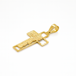 Dieser elegante Anhänger aus massivem Gelbgold zeigt eine fein gearbeitete Darstellung Jesu in einem ausgeschnittenen Kreuzdesign. Leicht und dennoch detailreich, ist er ein edles Symbol des Glaubens und eignet sich ideal für den Alltag, als bedeutungsvolles Geschenk oder für religiöse Feierlichkeiten.