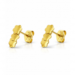 Handcrafted, real yellow gold climber earrings with three delicate flowers. Minimalist yet feminine, designed for elegance and everyday wear. Hypoallergenic and artisan-polished.
