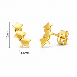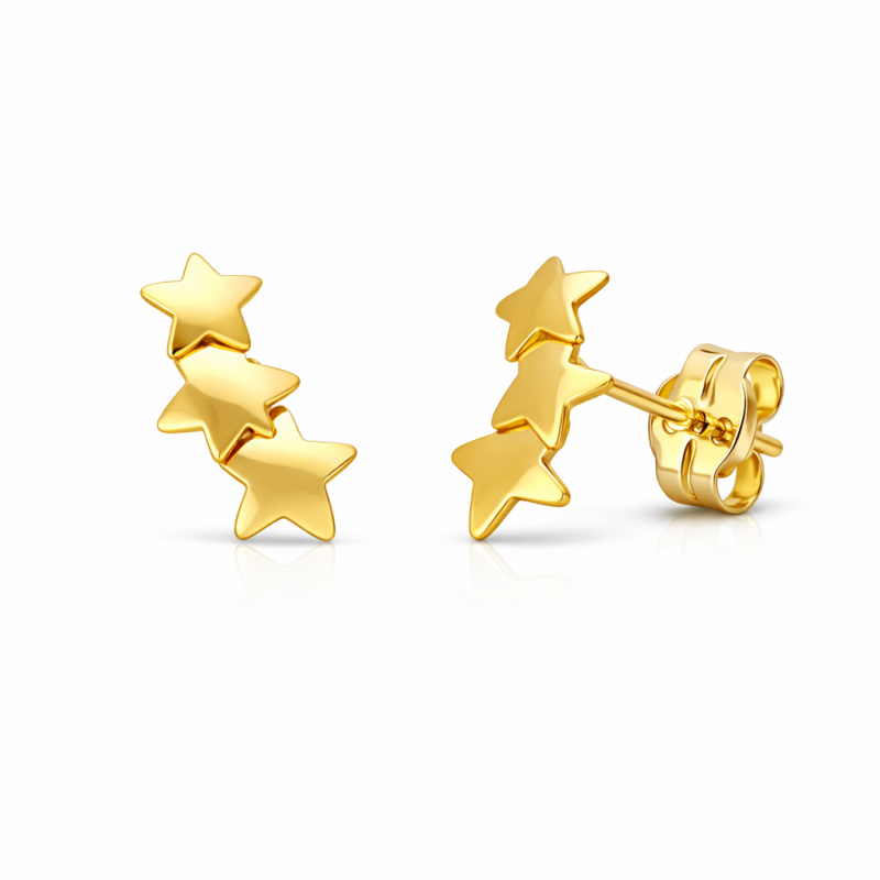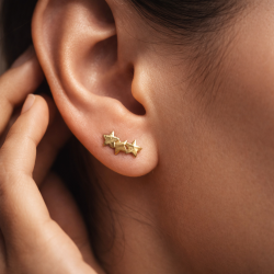 Yellow gold climbers featuring three polished stars. Radiant, modern, and crafted for daily elegance or gifting.