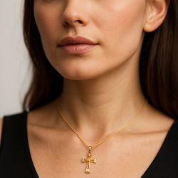 Decorativa y elegante, esta cruz calada de oro auténtico presenta circonitas de 2 mm: una joya clásica de fe con un toque moderno y refinado.