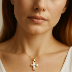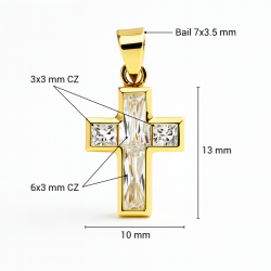 Product Description: Elegant Real gold cross pendant combining baguette and princess-cut CZ stones — a statement of modern luxury and timeless devotion.Product Attributes:• Main Material: Solid Gold 9K 10K 14K 18K• Stone: 6x3 & 3x3 mm CZ• Size: 13×10mm• Style: Solid Cross• Craftsmanship: HandmadeLog in to see approximate prices.