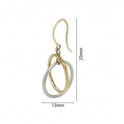 Modern two-tone gold circular dangle earrings, crafted for women looking for versatile and lightweight accessories. Perfect for everyday or special occasions.