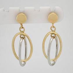 Dangling hoop earrings in yellow gold with a unique design, offering lightweight and elegant versatility for any look.