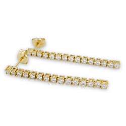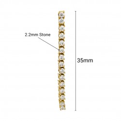 These sophisticated gold tennis drop earrings feature a dazzling row of cubic zirconia stones, perfect for adding a touch of luxury to any outfit.