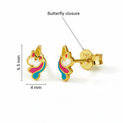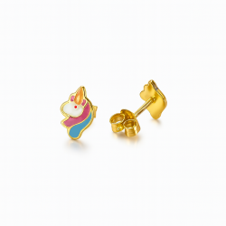 These unicorn enamel earrings bring fantasy to life. Crafted in Real yellow gold with pink, blue, and white enamel, they’re perfect for dreamers and girls who love colour.