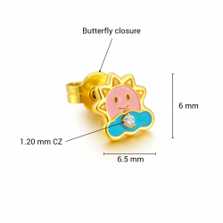 These sun and cloud earrings shine with happy colours. Crafted in Real gold with enamel and a cubic zirconia accent — cheerful fine jewellery for girls.