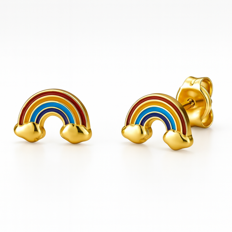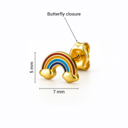 Add colour and joy to your genuine gold rainbow earrings. Their vibrant enamel arches symbolise positivity. Handmade for everyday wear.