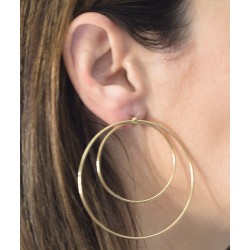 Closed hoops earring thread 1.50mmPolished finish.Closure: pressure.Measurements: double ring 40mm and 60mmMetal color: gold plated. Available in silverMaterial: silver 925/000.Login to see approximate prices.