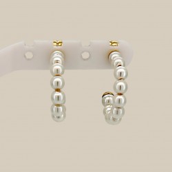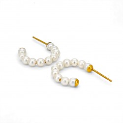 These elegant gold hoops feature perfectly arranged sparkling shell pearls that add a touch of sophistication to any outfit. They are designed for women seeking timeless elegance and are perfect for everyday wear and special events such as weddings. A true classic in fine jewellery, these hoops are designed for durability and long-lasting shine.