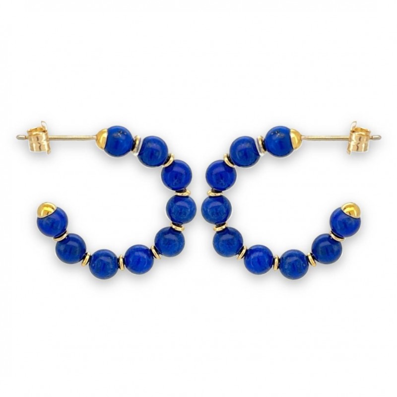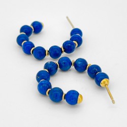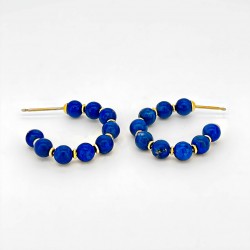 These chic blue simulated Lapis bead hoop earrings feature gold spacers that add a touch of sophistication to the vibrant blue design. Perfect for day-to-night transitions, these earrings are lightweight and comfortable, making them an ideal accessory for women seeking stylish, versatile jewellery.