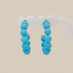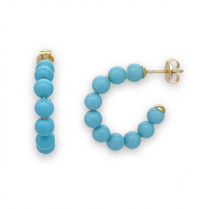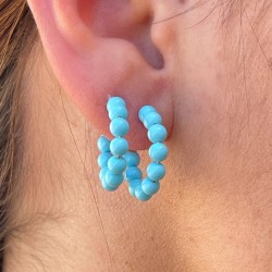 These vibrant turquoise bead hoop earrings are adorned with 14k gold caps, creating a fresh and playful look. Ideal for casual outings or beachwear, these earrings provide a pop of colour that complements any summer wardrobe. Lightweight and stylish, they are a must-have for women who enjoy fun, colourful jewellery.