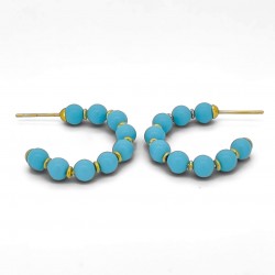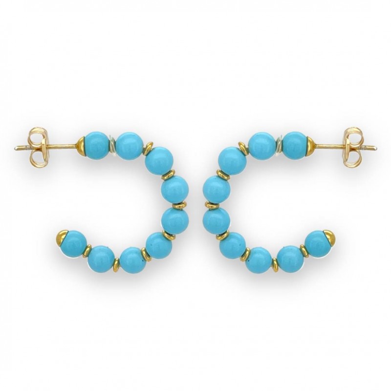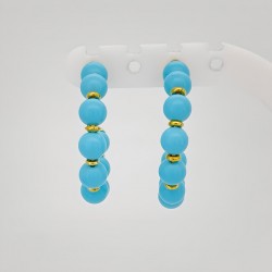 Featuring chic turquoise simulated beads and gold spacers, these hoop earrings offer a stylish and versatile accessory for women. Perfect for casual wear or summer outings, these earrings add a refreshing pop of colour to any outfit, making them a must-have for jewellery lovers who appreciate modern, vibrant designs.