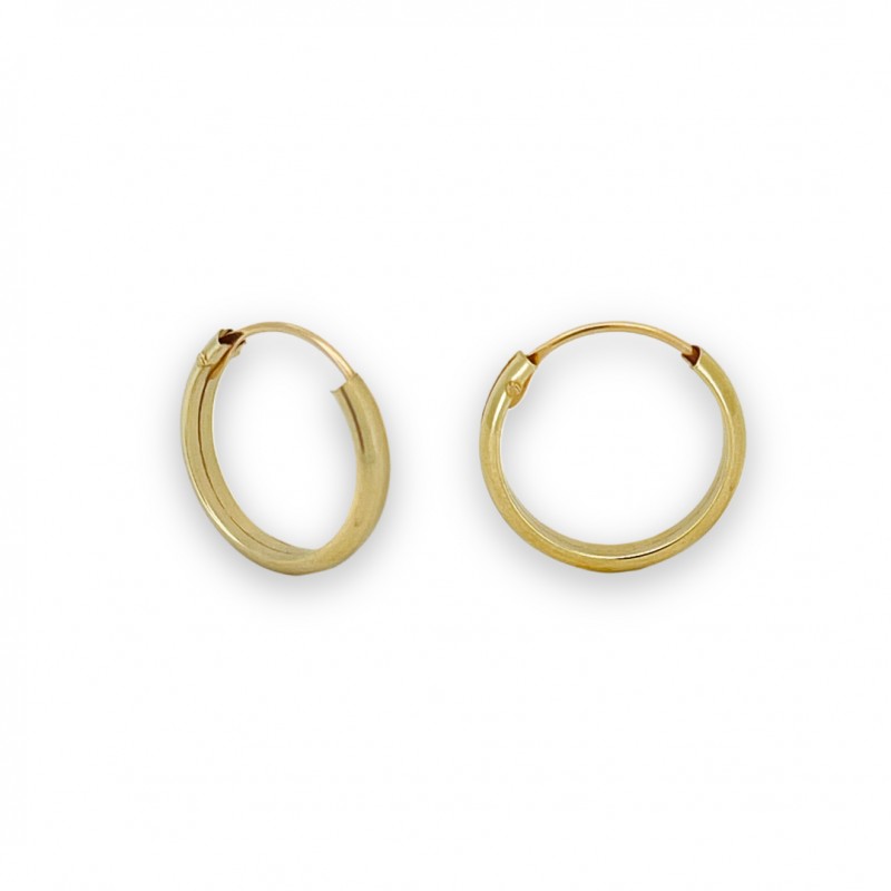 These D-shaped hoop earrings are available in 10mm, 12mm, 14mm, and 20mm diameters. The 2mm wide D-shaped section adds a unique and durable structure, making them ideal for everyday wear with a touch of sophistication.