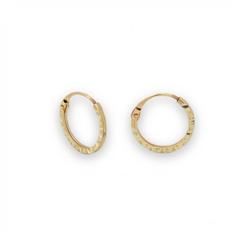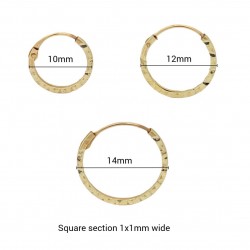 These carved hoop earrings feature a unique square section with 1x1mm width. Available in 10mm, 12mm, and 14mm diameters, these carved earrings add a sophisticated touch to any look. Ideal for both casual and special occasions.