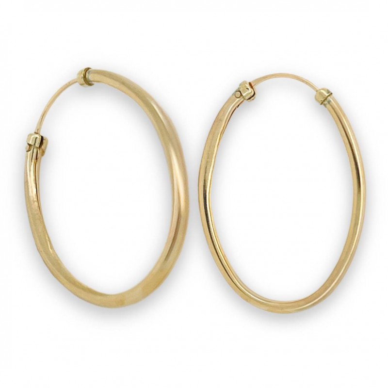 These oval hoop earrings measure 18mm by 24mm with a 1.50mm tube section, offering an elegant yet versatile design suitable for both casual and special occasions.