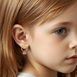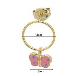 These adorable gold hoop earrings with a pink butterfly charm are perfect for young girls. Designed for comfort and hypoallergenic for sensitive skin. A great gift for special occasions.
