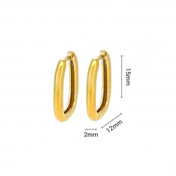 These elegant yellow gold huggie earrings have a sleek, modern rectangular design, with a 15mm height, perfect for adding a touch of sophistication to any outfit.