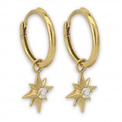 Shine bright with these star charm huggie hoop earrings in gold. Embellished with cubic zirconia, these trendy earrings are the perfect mix of elegance and sparkle.