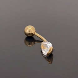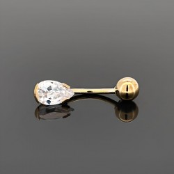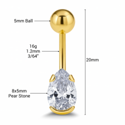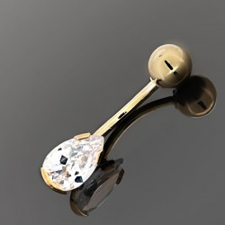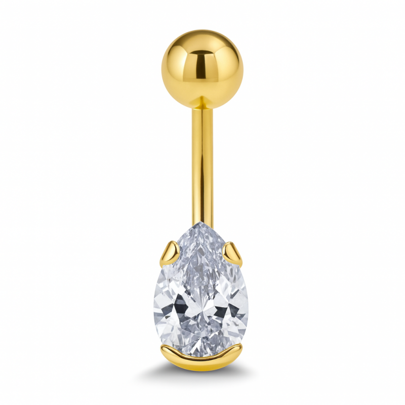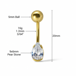 Statement pear CZ 9x6mm in Real gold Belly Piercing with polished top ball. Curved bar engineered for comfort and security. A striking party-ready piece.Product Attributes