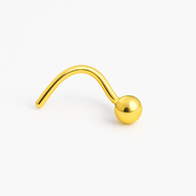 Clean 2mm polished ball in solid Real gold on an anatomical L-post for secure daily comfort. A top-selling staple for piercing counters.Product Attributes