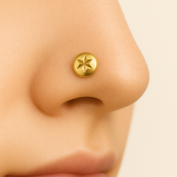 Artisanal dome star nose stud crafted in solid real gold. Clean engraving and smooth polish deliver a distinctive yet wearable look. Built for comfort with an anatomical 0.7mm L-post.Product Attributes