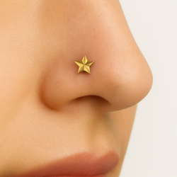 Five-point engraved star nose stud in solid real gold with polished finish. Comfortable 0.7mm L-post. Distinctive design that moves quickly at retail.Product Attributes