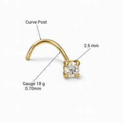 Timeless round CZ nose stud in real gold with classic four-prong mount. Anatomical 0.7mm L-post provides a secure, comfortable fit for everyday sales.