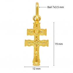 Product description: A detailed double-bar Byzantine cross crafted in real yellow gold. Its textured engravings and ornamental patterns create a striking traditional aesthetic, ideal for customers seeking symbolic and historical religious jewellery. Lightweight yet full of character.Product Attributes:• Main Material available: 9k, 10k, 14k, and 18k real gold• Style: Byzantine, double-bar, textured engraved• Target: Women, Men, Unisex• Usage: Daily wear, gifts, religious occasions• Design: Ornamental carving with historical aesthetic• Dimensions: 19 × 12 mm• Bail: 7×3.5 mmLog in to see approximate prices.