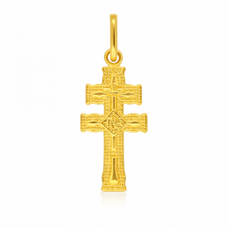 A compact Orthodox-style double-bar cross made in genuine 14k gold. Featuring fine textured engraving and traditional symbolism, this piece is ideal for customers who prefer subtle yet meaningful spiritual jewellery.