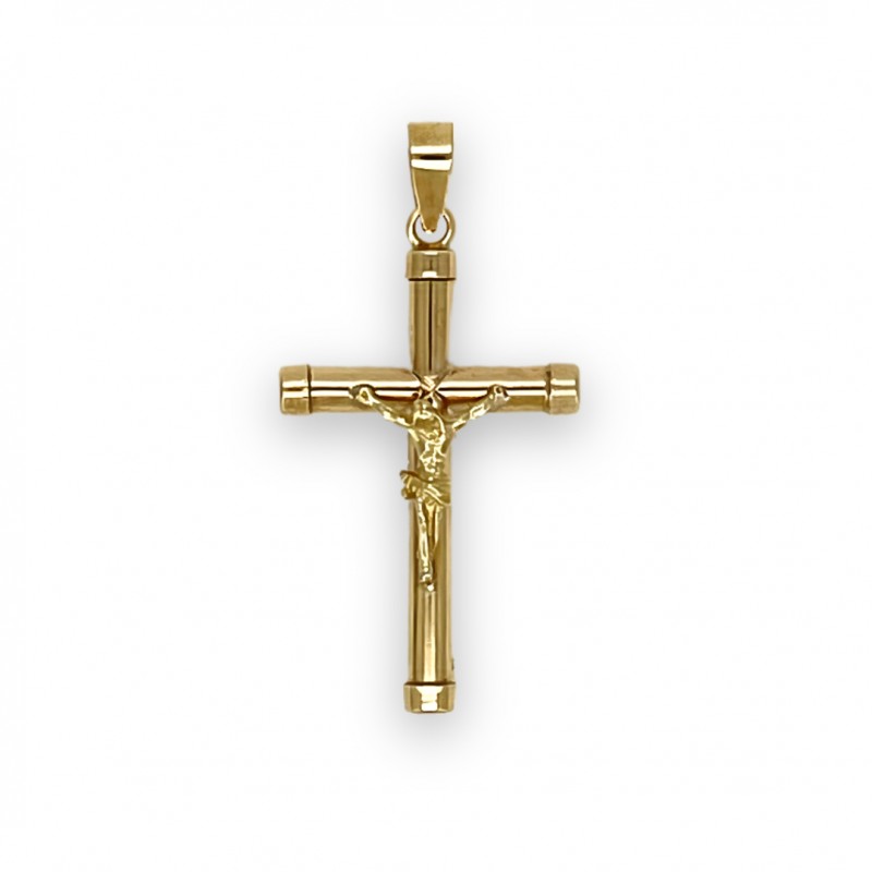 A bold large yellow gold crucifix pendant designed for men, combining traditional religious symbolism with modern style.