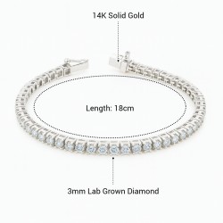 Elegant and timeless, this tennis bracelet is crafted in White hypoallergenic gold and features 3mm round-cut lab-grown diamonds for a brilliant shine. Lightweight and comfortable, it suits both daily wear and special occasions. A refined piece designed for modern women who value ethical luxury.